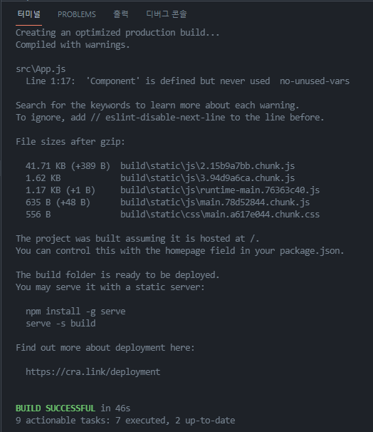 npm start 가 정상적으로 진행이 되었다면 아래 명령어들도 순차적으로 실행해줍니다.