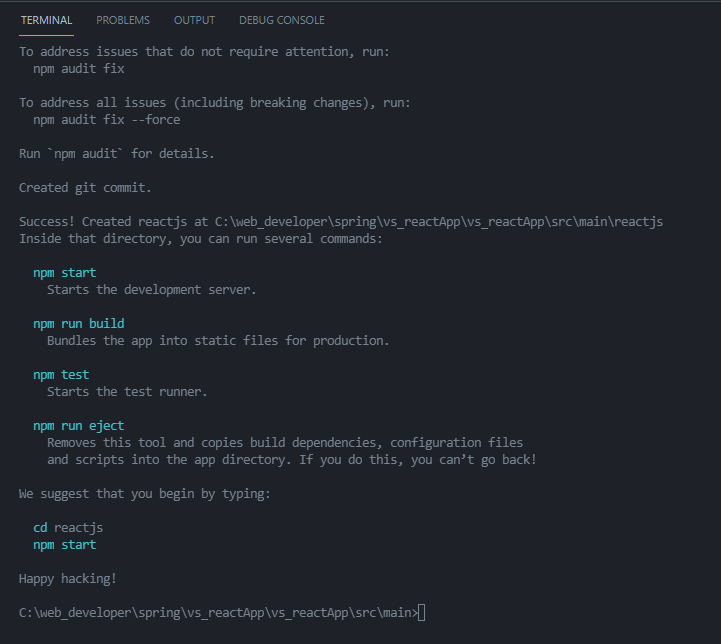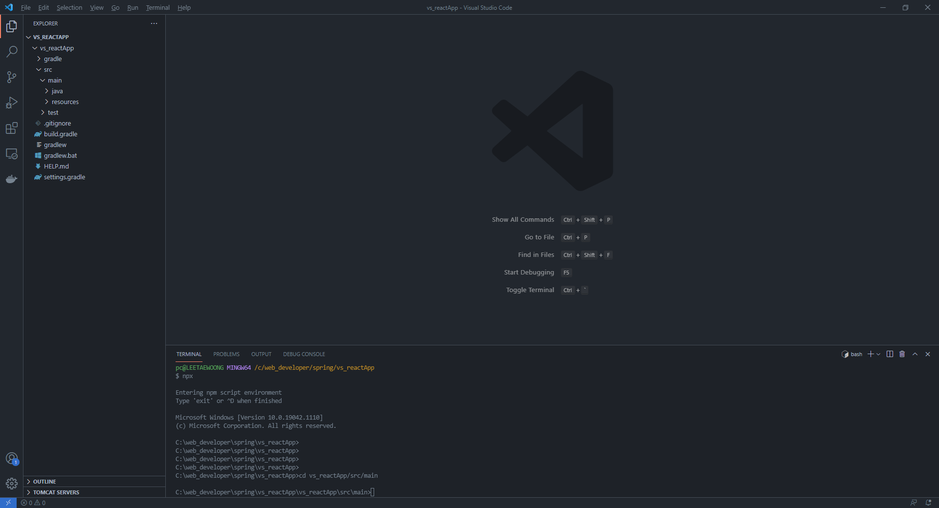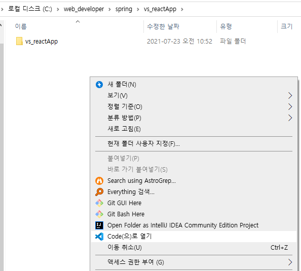 C:\web_developer\spring\vs_reactApp 진입 후 해당 경로에서 vscode 실행