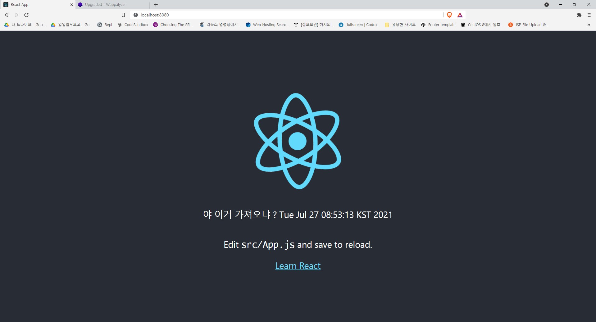 8080 포트로 접속해서 react 앱이 정상작동된다면 정상적으로 처리된것입니다.