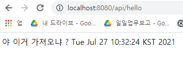다시 서버를 가동 시킨 후 http://localhost:8080/api/hello 접속을 하면