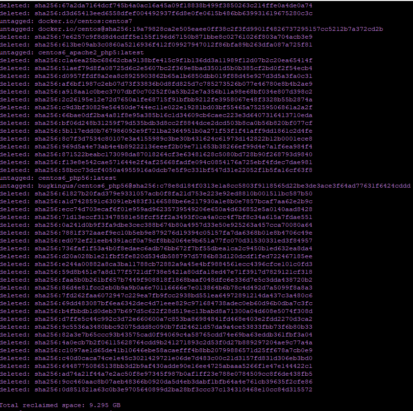 그리고 현재 가동되고있는 컨테이너의 이미지 아니면 가차없이 싸그리 날려버린다