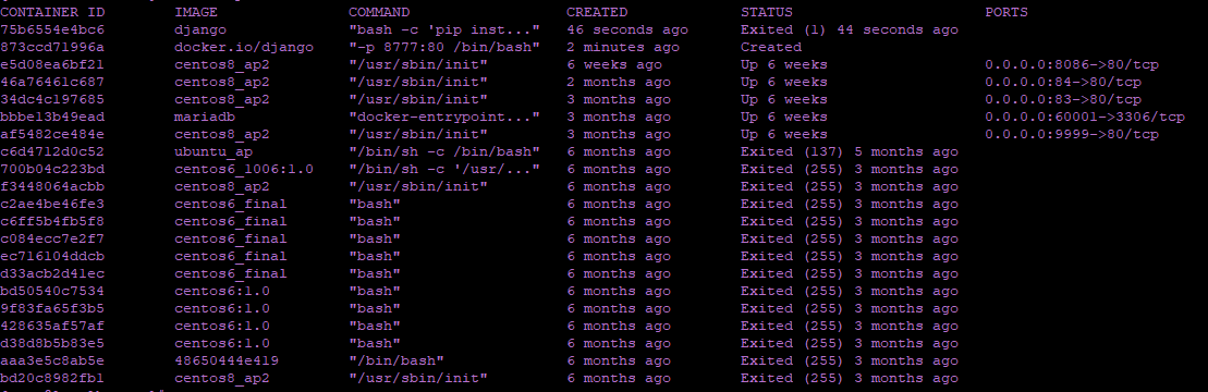 컨테이너들도 Exited 으로 되어있던 녀석들은 싹다 날라갔다 Run 으로 정상가동중인 애들은 잘 살아있는 상태 ...