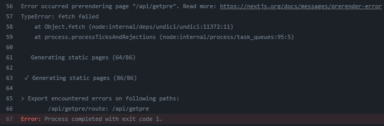 Error occurred prerendering page "/api/getpre". Read more: https://nextjs.org/docs/messages/prerender-error