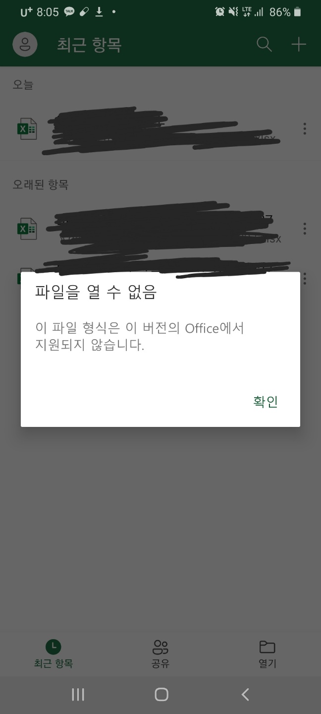 그리고 실제 엑셀파일이 아니므로 모바일에서도 열리지 않는다