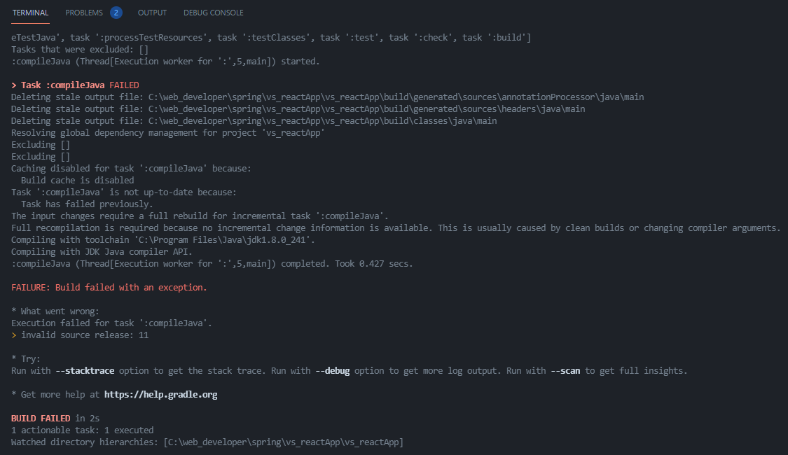 JAVA path 와 vscode 상에서 인식한 java path 가 달라서 발생한 문제고